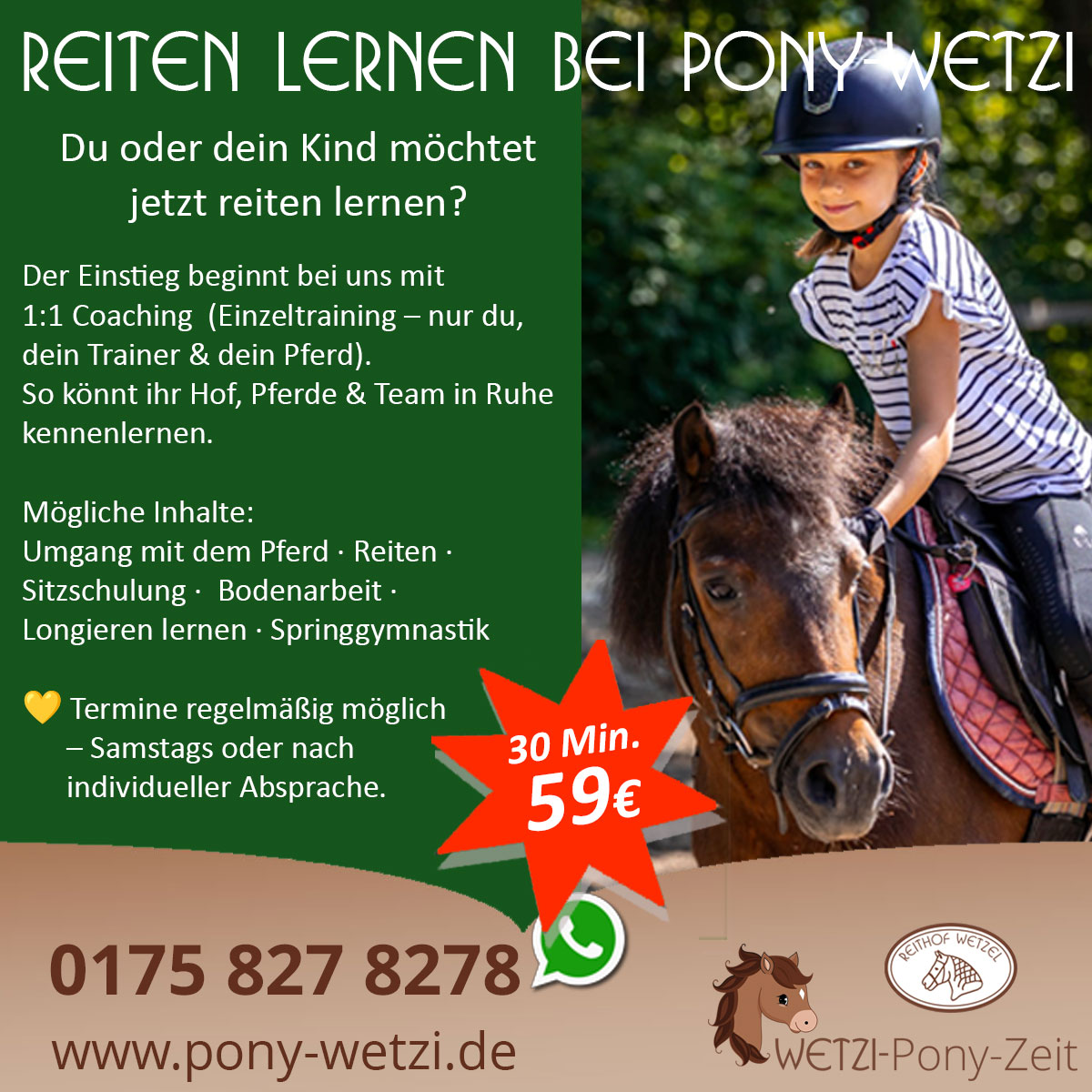 WETZI Ponykindergarten → WETZI Mini-Unterricht → WETZI PROFIS →WETZI Premium 1:1 → WETZI Premium Longe